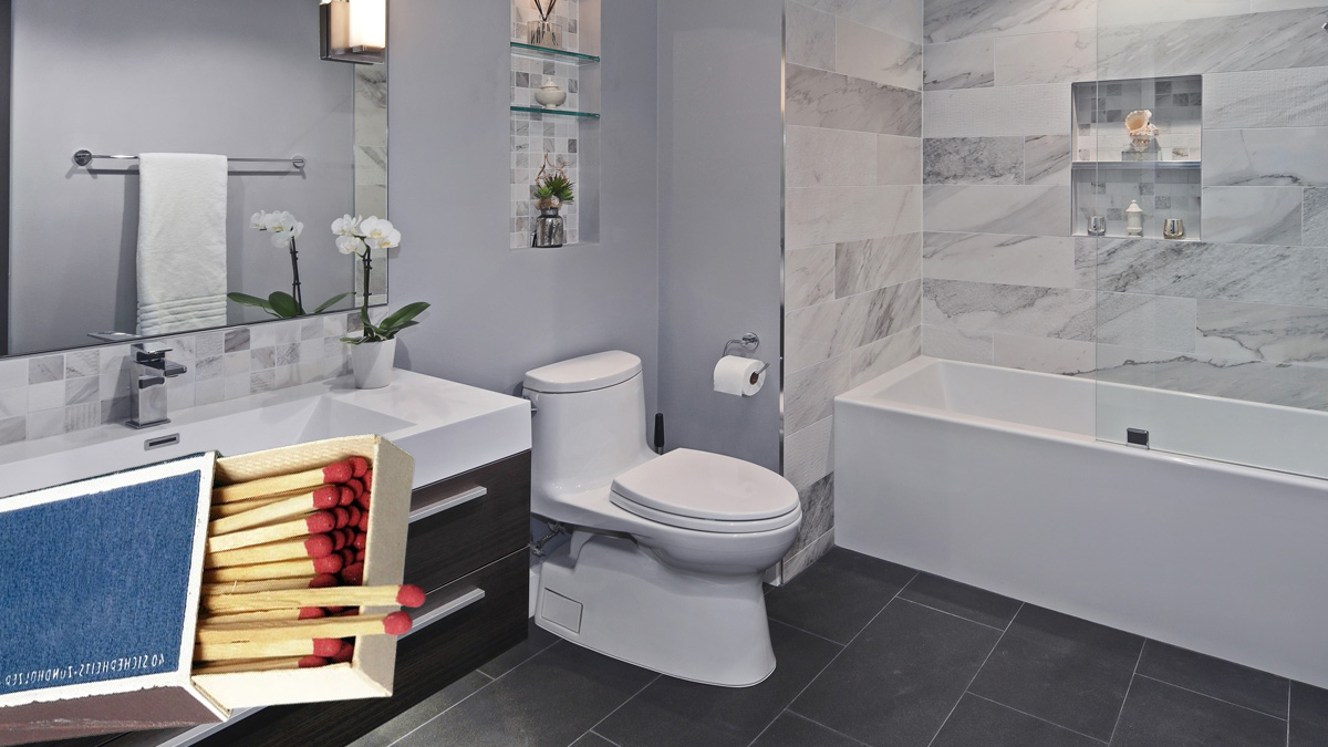 Birkaç saniye yeterli! Banyoda kötü kokulardan kurtulmak için yakacağınız bir kibrit, ucunda bulunan kükürt sayesinde sadece kokuyu maskelemekle kalmaz, aynı zamanda onun kimyasal yapısını değiştirerek tamamen ortadan kaldırır.