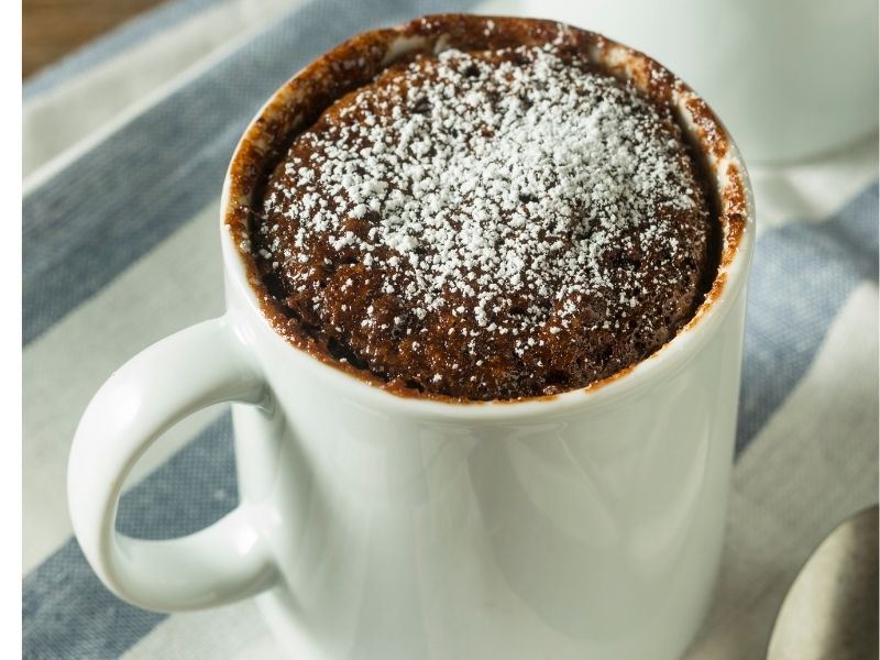4. Hazırladığınız hamuru mikrodalga fırında 800 W güçte yaklaşık 1 dakika 15 saniye ile 1 dakika 30 saniye arasında pişirin. Kekin kabarıp üstü hafifçe kuruduğunda hazırdır.