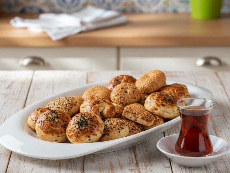 Hazırladığınız hamurdan ceviz büyüklüğünde parçalar koparın. Ellerinizle yuvarlayıp yağlı kağıt serili fırın tepsisine dizin. Üzerlerine yumurta sarısı sürerek ve isteğe bağlı olarak susam, çörek otu veya haşhaş serpebilirsiniz.