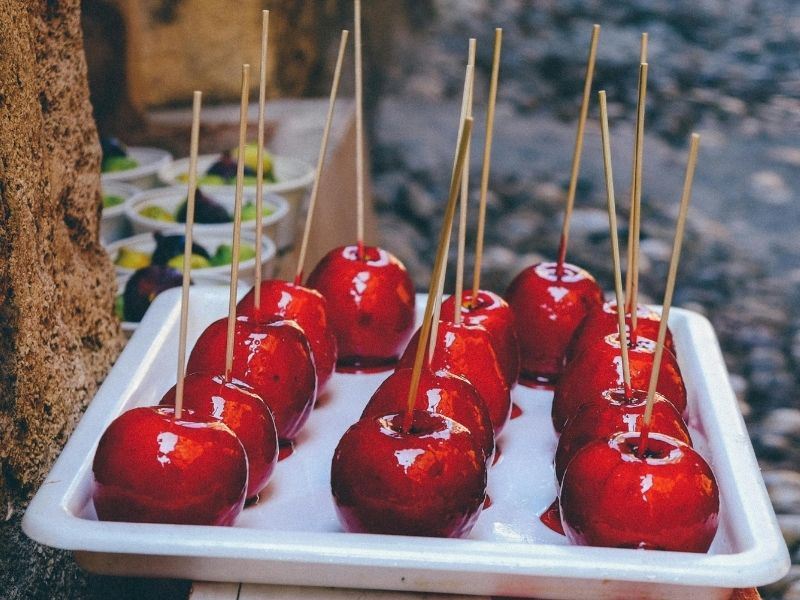 Gıda boyası kullanmadan da sade ve şık bir elma şekeri yapabilirsiniz, bu tamamen tercih meselesidir.