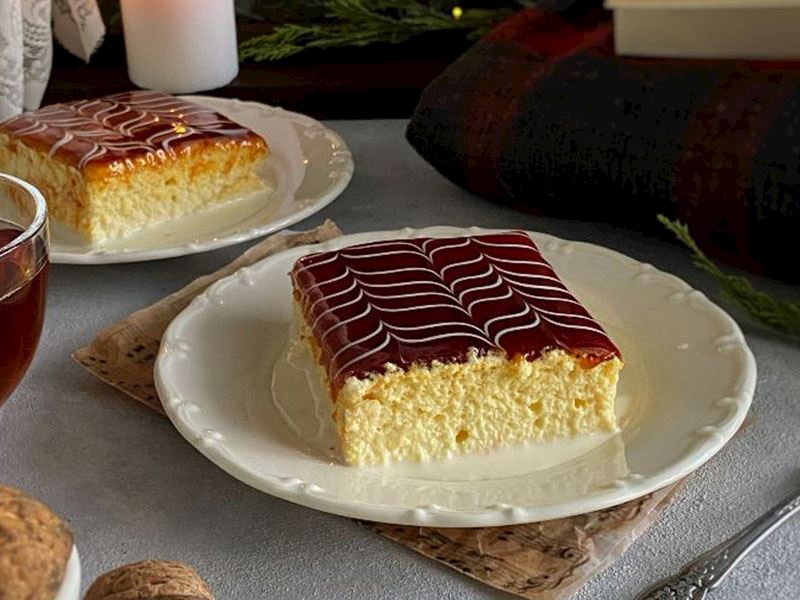Sütlü karışımı hazırlayıp, kek ilk sıcağı çıkınca üzerine eşit şekilde dökün. Buzdolabında en az 2-3 saat dinlendirin. Bu süre sonunda, frambuaz sosunu hazırlayın: frambuaz, şeker ve suyu kaynatın. Nişastayı az suyla açıp ekleyin ve kıvam alıncaya kadar pişirin. Sos soğuduktan sonra, kekin üzerine dökün ve birkaç saat daha dinlenmeye bırakın.