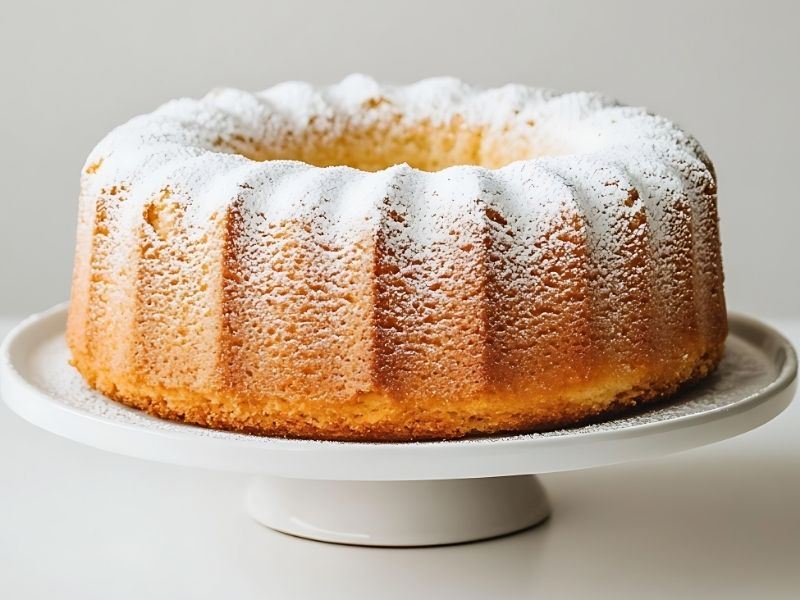 Hazırladığınız kek hamurunu, yağlamadan ve unlamadan bırakılmış kelepçeli kek kalıbına dökün. Önceden ısıtılmış fırında yaklaşık 40-45 dakika, kürdan testi yaparak pişip pişmediğini kontrol edin. Kekinizin üzeri altın sarısı renginde ve içi tamamen pişmiş olmalı. Fırından çıktıktan sonra, kalıbı ters çevirip, kek tamamen soğuyana kadar bu pozisyonda bırakın. Bu yöntem, kekin çökmesini engeller ve kabarık yapısını korur.