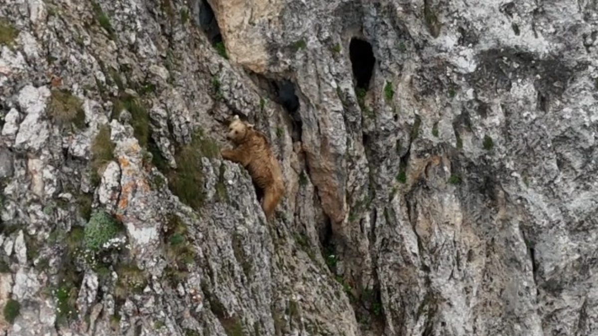 Yüksek kayalıkların üzerinde ustalıkla inen büyük bir bozayıyı fark eden ikili, bu nadir ve doğal anı drone kameralarıyla kaydetti. Ayının dikkatli ve dengeli inişi, doğanın kendine özgü canlı ve hareketli atmosferini bir kez daha gözler önüne serdi. Bu an, bölgedeki yaban hayatının ne denli zengin ve korunmaya muhtaç olduğunu da hatırlattı.
